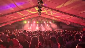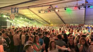 DJ Koen houdt de sfeer er tussendoor goed in en zorgt dat de tent blijft knallen.